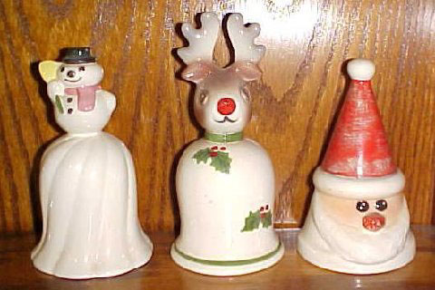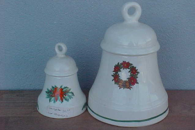 Candy jar, also a bell, is 6" tall and has a holiday holly