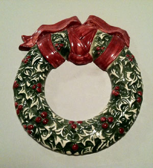 is decorated with holiday wreath decals, three around the