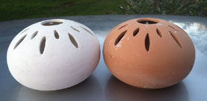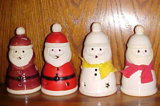 two Santas in the middle are Voltives. Cut-outs in the clay allow