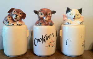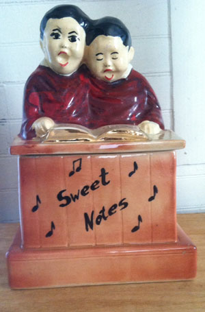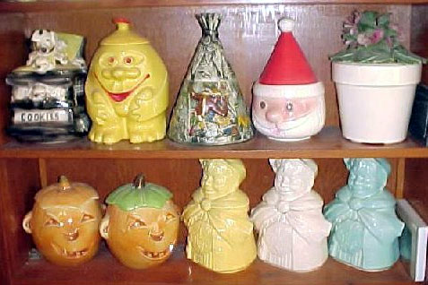 Motif Cookie jars, Red and Yellow-Rare. 1958
