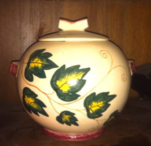 Note the finial on the lid to recognize the McCoy Jar. 1970. |